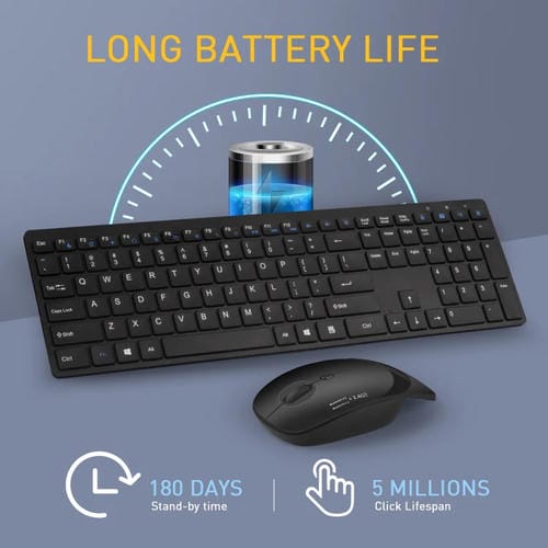 - Tamaño Teclado: 368x145x25 mm; Tamaño Ratón: 110x7 mm; Interruptores silenciosos con vida útil de 3 millones de pulsaciones; Voltaje de Carga: 1,5 V