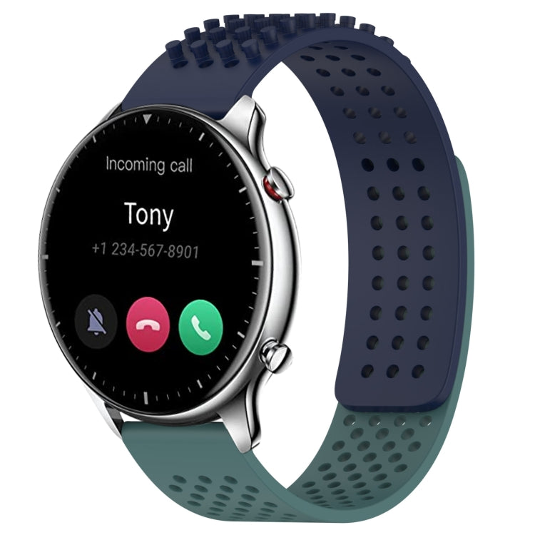 Correa de Silicona para Amazfit GTR 2 con Puntos 3D Transpirables y Orificios 22mm (Azul Medianoche + Verde Oliva)