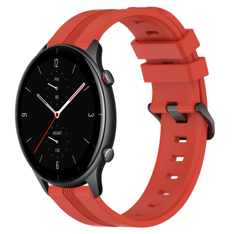 Banda de Reloj de Silicona para Amazfit GTR 2E 22mm con Rayas Cóncavas (Rojo)