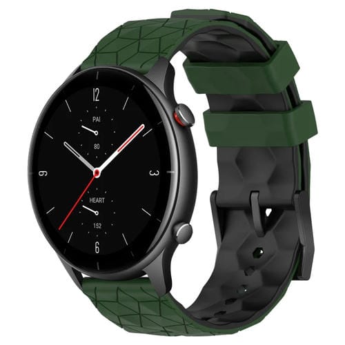 Banda de Reloj Amazfit GTR 2E 22mm Silicona Textura de Fútbol Dos Colores (Verde Militar + Negro)