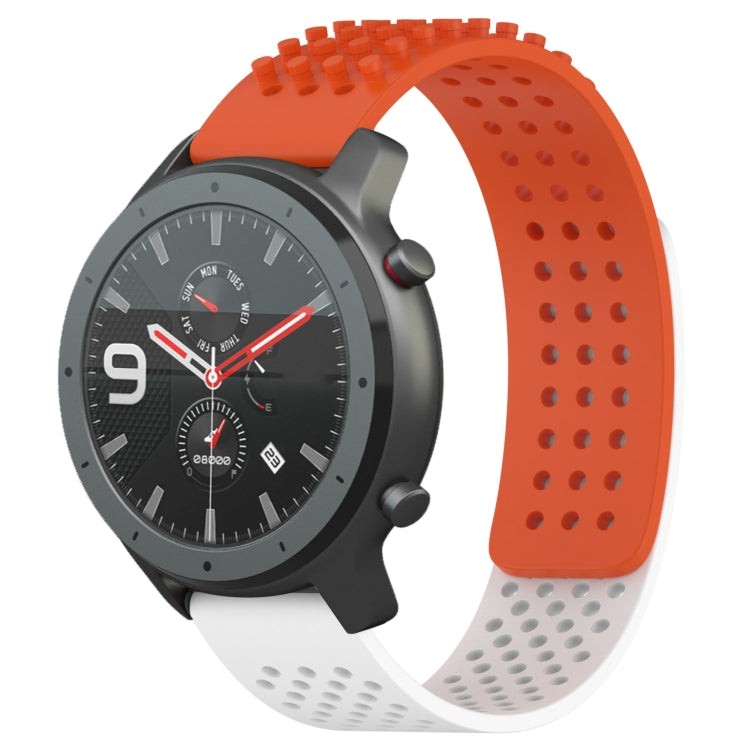 Correa de Reloj Amazfit GTR 47mm 22mm silicona transpirable con orificios y puntos 3D (Naranja + Blanco)