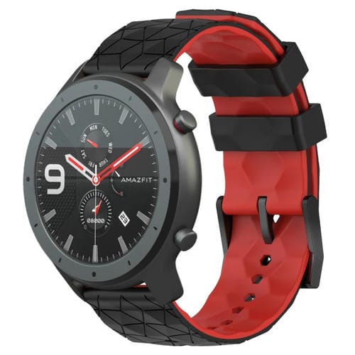 Banda de Reloj de Silicona para Amazfit GTR 47mm 22mm Textura de Fútbol (Negro + Rojo)