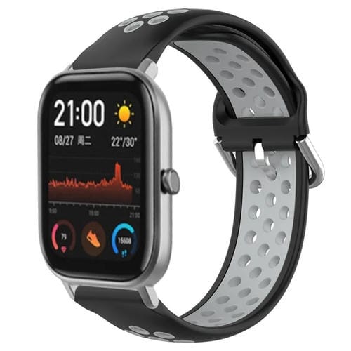Correa de Reloj Amazfit GTS 20mm Silicona Deportiva Transpirable Perforada (Negro + Gris)