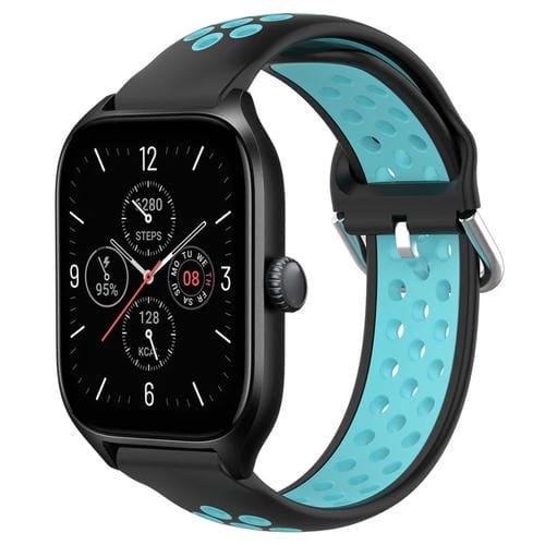 Pour Amazfit GTS 4 Bracelet de montre en silicone de sport respirant perforé de 20 mm (noir + bleu)