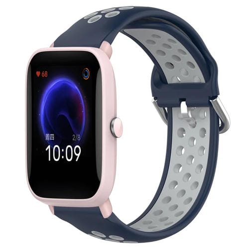 Correa de Reloj Amazfit Pop Pro 20mm Silicona Deportiva Transpirable Perforada (Azul Medianoche + Gris)