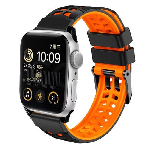 Correa de Silicona para Apple Watch 7 41mm con Hebilla Doble Fila de Sarga (Negro Naranja)