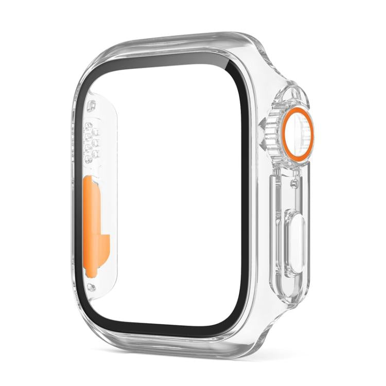 Para Apple Watch Series 9/8/7 de 45 mm xDfind Cambiar a Ultra 49 mm Película de vidrio templado Cubierta de reloj de PC integrada (Transparente + Naranja)