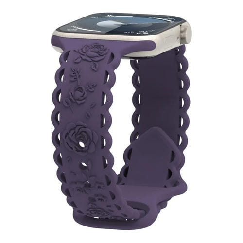 Correa de Silicona para Apple Watch Ultra 49mm con Relieve de Rosa 3D y Encaje (Cereza Carmesí)