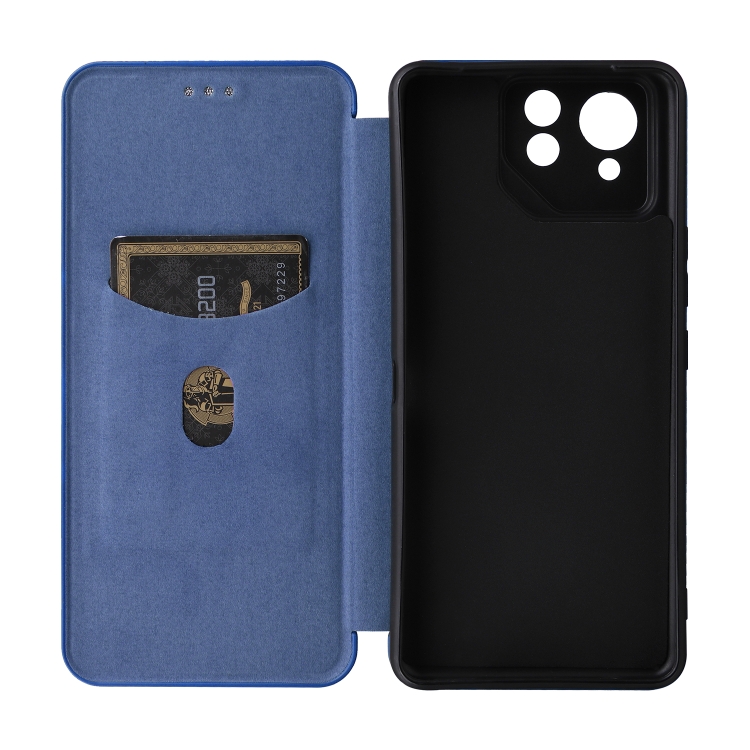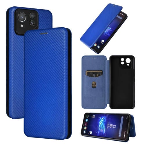 Funda para Asus Rog Phone 8 Pro de Cuero con Tapa y Textura de Fibra de Carbono (Azul)