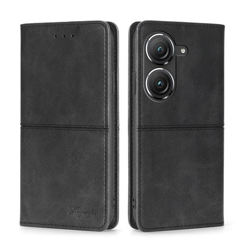 Funda de Cuero para Asus Zenfone 9 con Tapa Horizontal Magnética y Textura de Vaca (Negro)