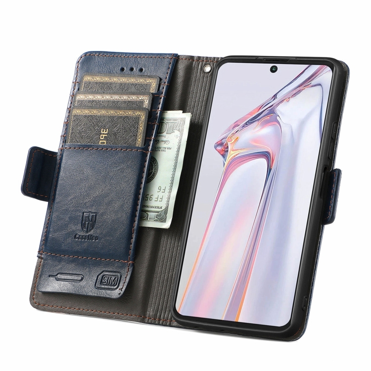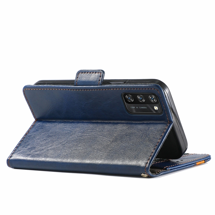 Funda de Cuero para BlackView A100 Caseno Business Empalme Dual con Hebilla Magnética y Soporte (Azul)