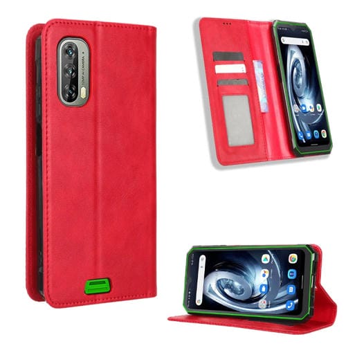 Funda de Cuero con Hebilla Magnética para BlackView Bv7100 Textura Retro (Rojo)