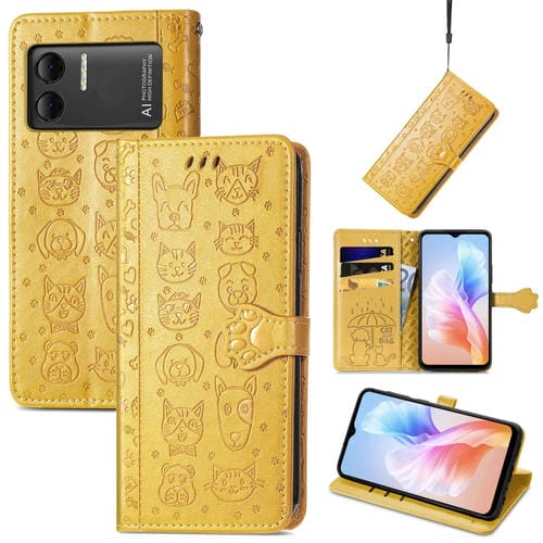 Estuche para Teléfono Doogee X98 Pro / X98 Cuero En Relieve Gatos y Perros (Amarillo)