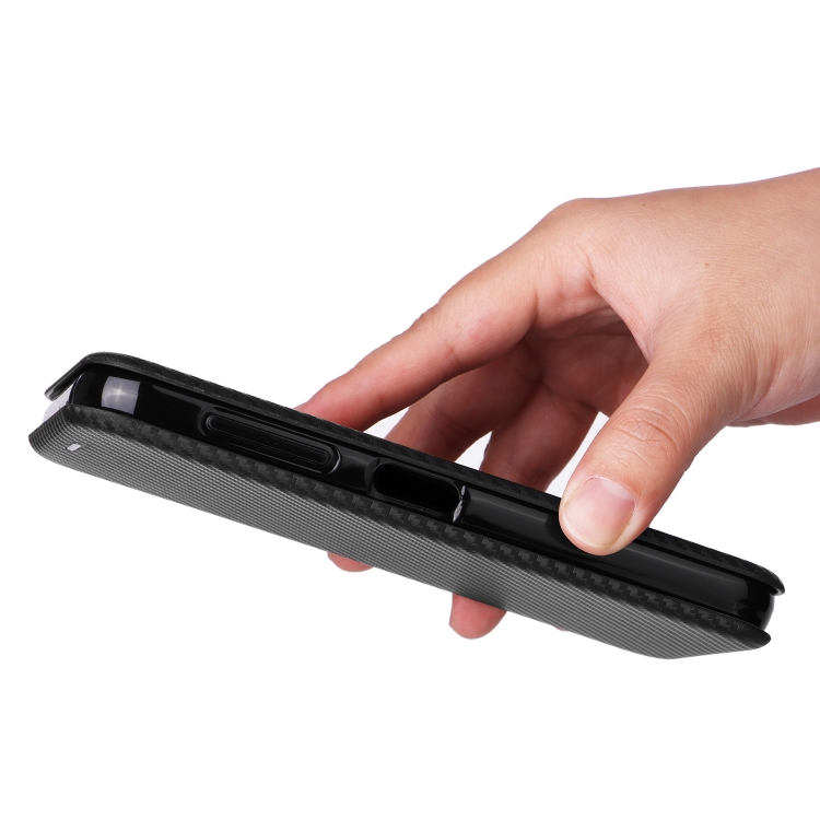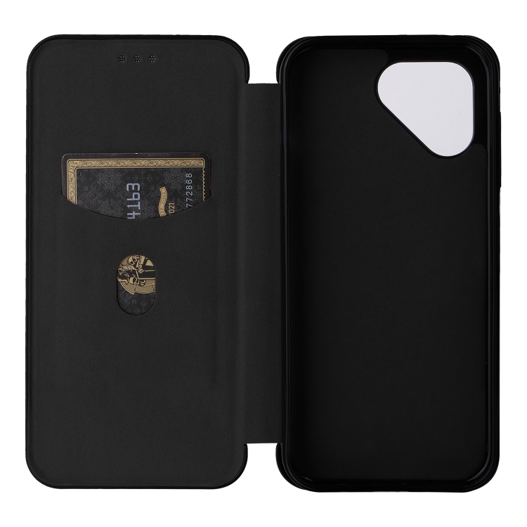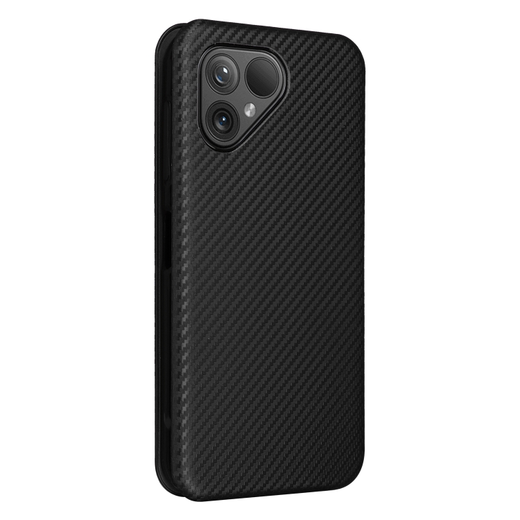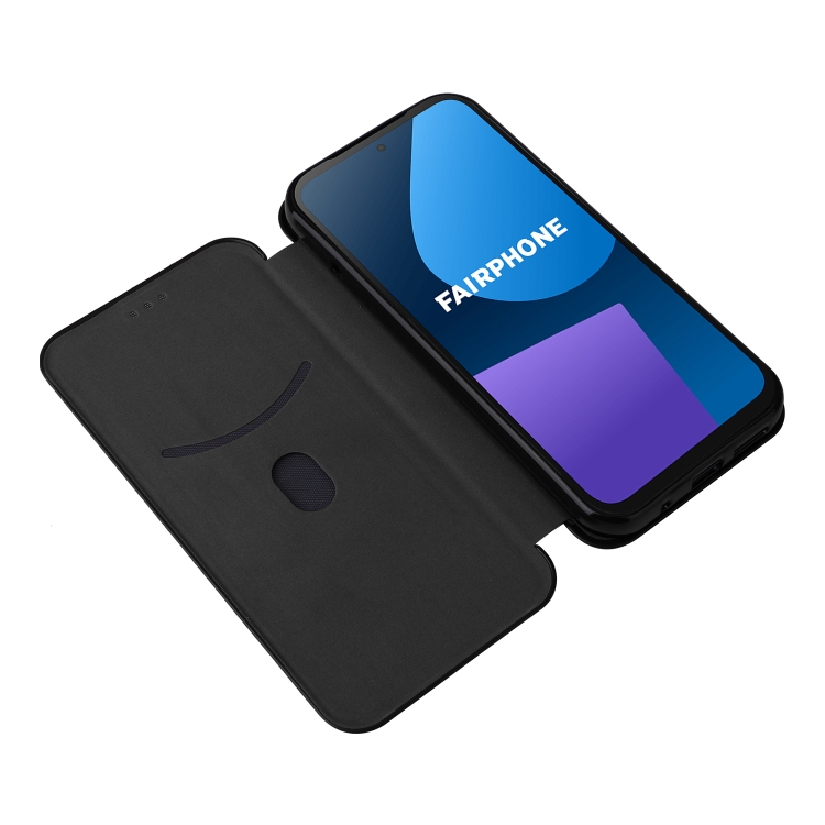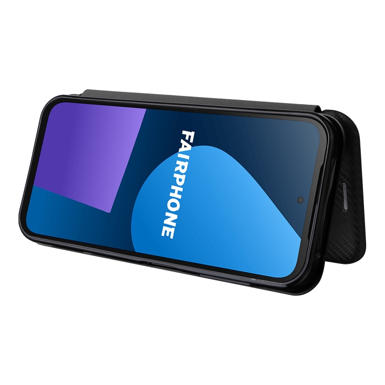 Funda de Cuero para Fairphone 5 con Tapa Textura Fibra de Carbono (Negro)