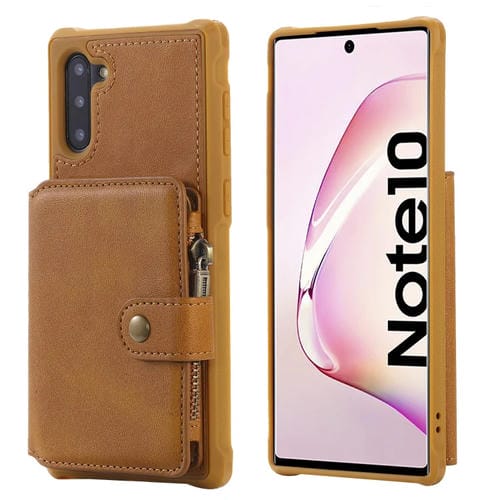 Estuche Protector para Galaxy Note 10 con Cremallera Hebilla Soporte Ranuras Tarjetas Billetera Cordón Marcos Fotos (Marrón)