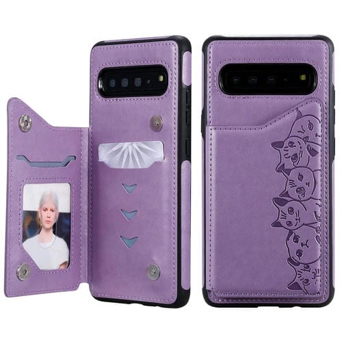 Estuche Protector Galaxy S10 5G Six Cats con Patrón En Relieve Soporte Ranuras Tarjetas Marco Fotos (Púrpura)