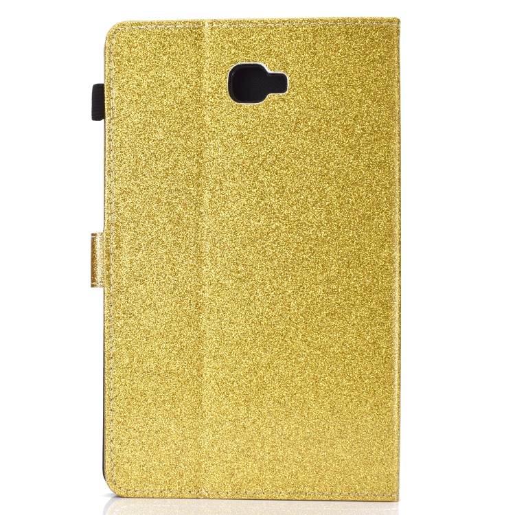 Funda de Cuero Galaxy Tab a 10.1 (2016) T580 Varnish Glitter Powder con Tapa Horizontal, Soporte y Ranura para Tarjeta (Dorado)