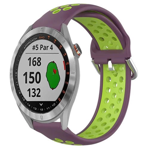 Banda de Reloj Garmin Approach S40 20mm Silicona Deportiva Transpirable Perforada (Púrpura + Lima)