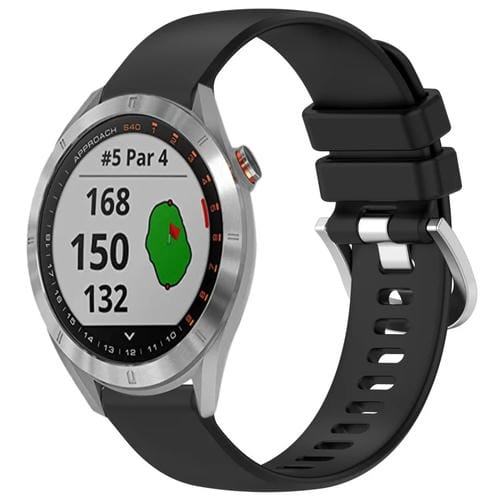 Correa de Reloj para Garmin Approach S40 Silicona con Hebilla Plateada (Negro)