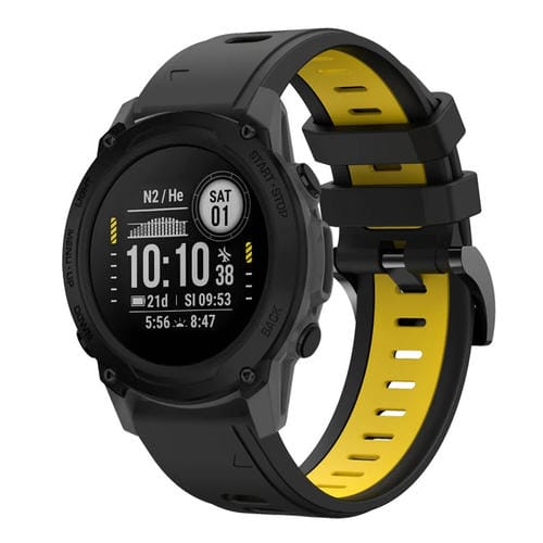 Banda de Reloj Garmin Descent G1 22mm silicona deportiva dos colores (Negro + Amarillo)