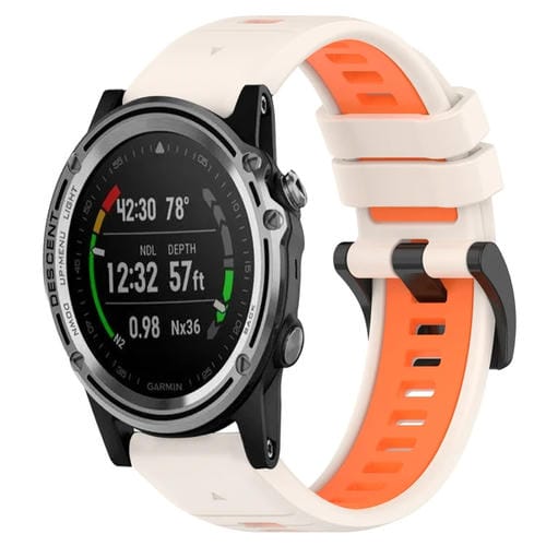 Correa de Silicona para Garmin Descent Mk 1 26mm Sports Dos Colores (Starlight + Orange)