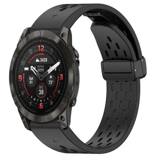 Correa de Reloj Silicona para Garmin Epix Pro con Hebilla Plegable Magnética y Orificios 51mm (Negro)
