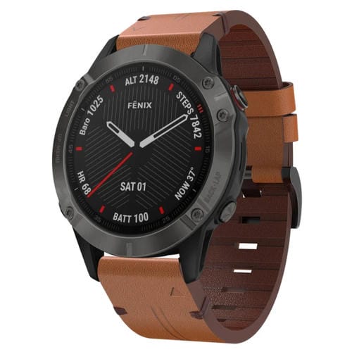 Correa de Reloj para Garmin Fenix 6 Sapphire GPS 22mm Cuero con Hebilla de Acero (Marrón)