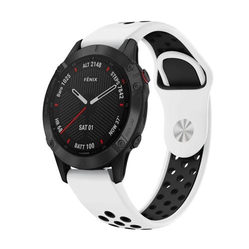 Pour Garmin Fenix ​​​​6 Sapphire GPS 22 mm Sports Bracelet de montre en silicone respirant (blanc + noir)