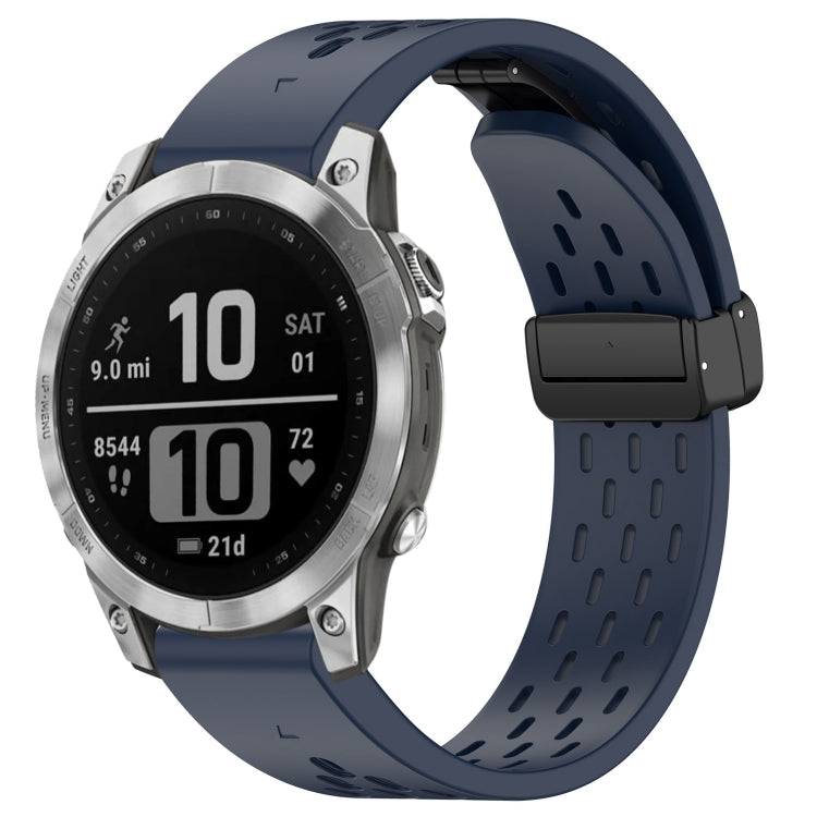 Correa de Reloj de Silicona para Garmin Fenix 7 y Fenix 7 Pro con Hebilla Magnética y Orificios de 22mm (Medianoche)