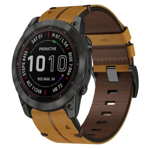 Correa de Reloj para Garmin Fenix 7 Sapphire Solar 22mm con Textura de Cuero (Marrón)