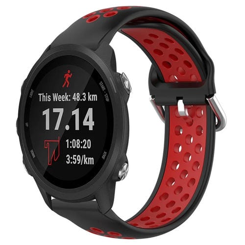Correa de Reloj Silicona Deportiva para Garmin Forerunner 245 20mm Transpirable Perforada (Negro + Rojo)