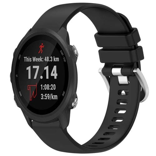 Correa de Silicona para Garmin Forerunner 245/245 Music con Hebilla Plateada (Negro)