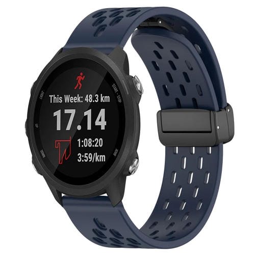 Correa de Silicona para Garmin Forerunner 245 Music con Cierre Magnético Plegable de 20mm (Azul Medianoche)