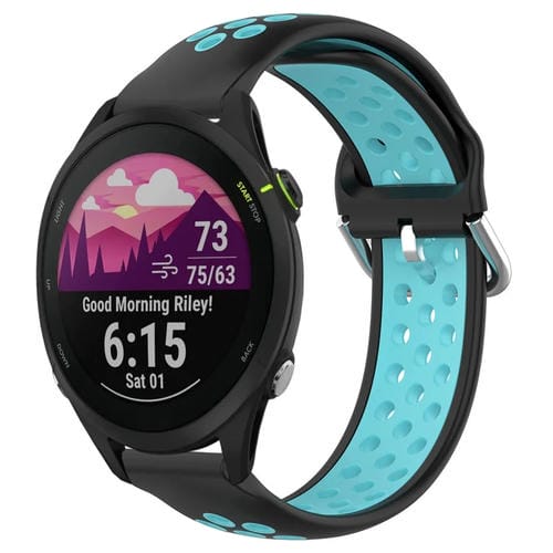 Correa de Reloj para Garmin Forerunner 255 22mm Silicona Deportiva Transpirable Perforada (Negro + Azul)