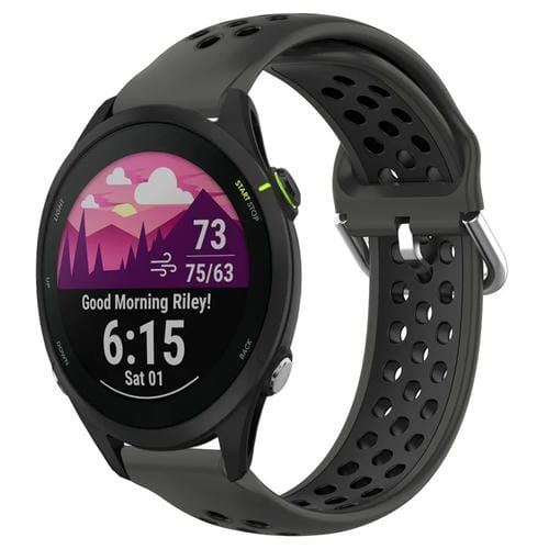 Banda de Reloj Silicona Deportiva para Garmin Forerunner 255 Music 22mm Transpirable Perforada (Negro)