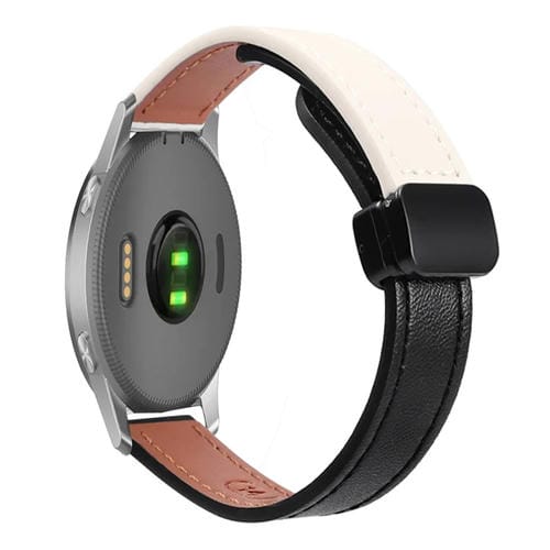 Correa de Reloj para Garmin Forerunner 255 Music Cuero Microfibra Hebilla Magnética 22mm (Negro + Albaricoque)