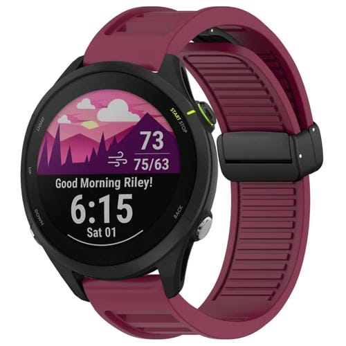 Correa de Silicona para Garmin Forerunner 255 Music con Hebilla Magnética Plegable 22mm (Rojo Vino)
