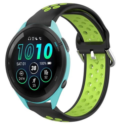 Banda de Reloj Silicona Deportiva para Garmin Forerunner 265 Music 22mm Transpirable (Negro + Lima)