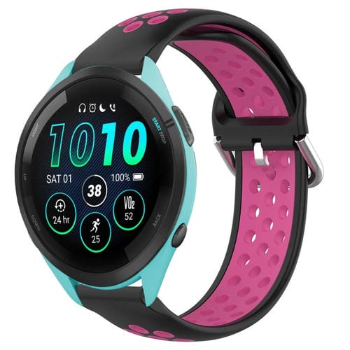 Banda de Reloj Garmin Forerunner 265 Music 22mm Silicona Deportiva Transpirable (Negro + Rojo Rosa)