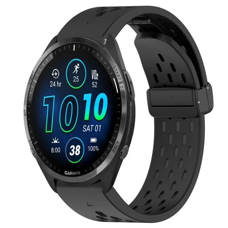 Correa de Reloj de Silicona para Garmin Forerunner 965 con Orificio y Hebilla Plegable de 22mm (Negro)