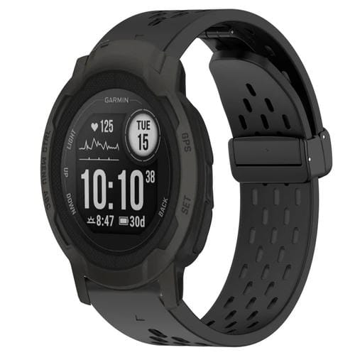 Correa de Silicona para Garmin Instinct 2 con Orificio y Hebilla Plegable de 22mm (Negro)