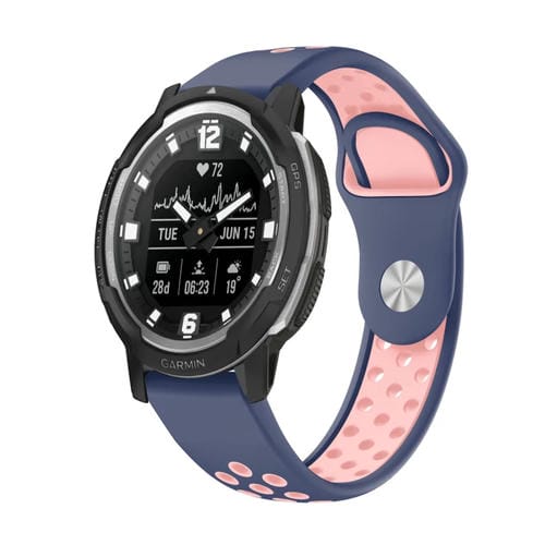 Pour Garmin Instinct Crossover 22 mm Sports Bracelet de montre en silicone respirant (bleu nuit + rose)