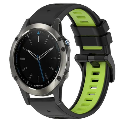 Correa de Silicona 22mm para Garmin Quatix 5 Sports Dos Colores (Negro + Verde Lima)