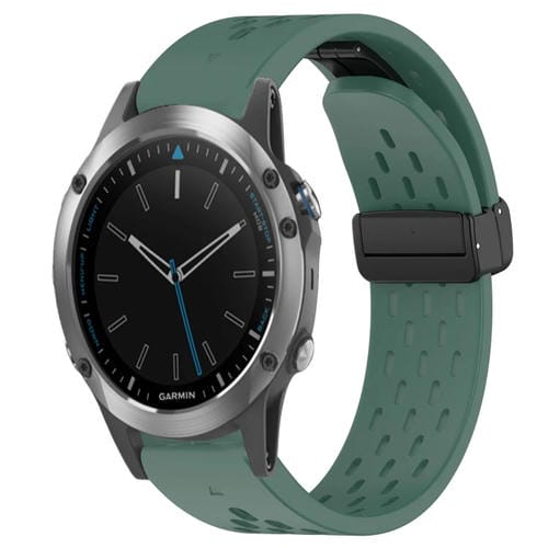 Correa de Reloj para Garmin Quatix 5 Silicona 22mm con Orificio y Hebilla Plegable (Verde Oscuro)