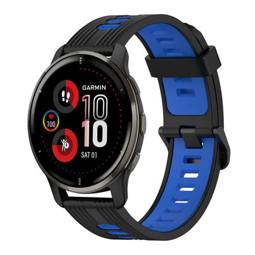 Banda de Reloj silicona para Garmin Venu 2 Más 20mm patrón dos colores (Negro+Azul)