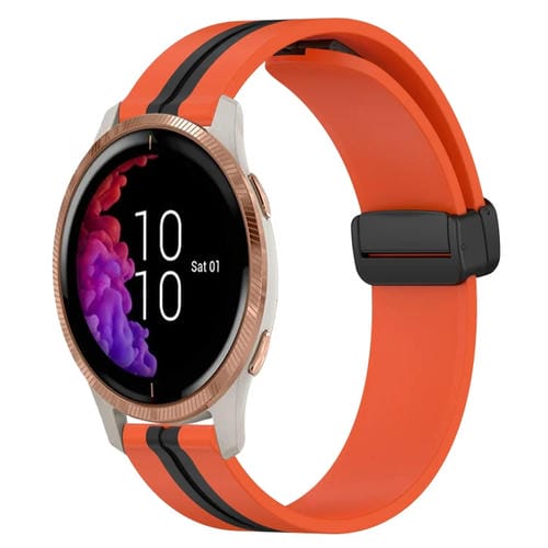 Correa de Silicona para Garmin Venu con Cierre Magnético Plegable de 20mm (Naranja + Negro)