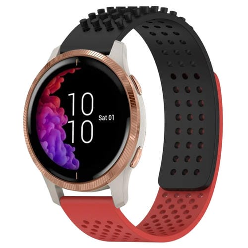 Correa de Reloj para Garmin Venu Silicona Puntos 3D Transpirable 20mm (Negro + Rojo)