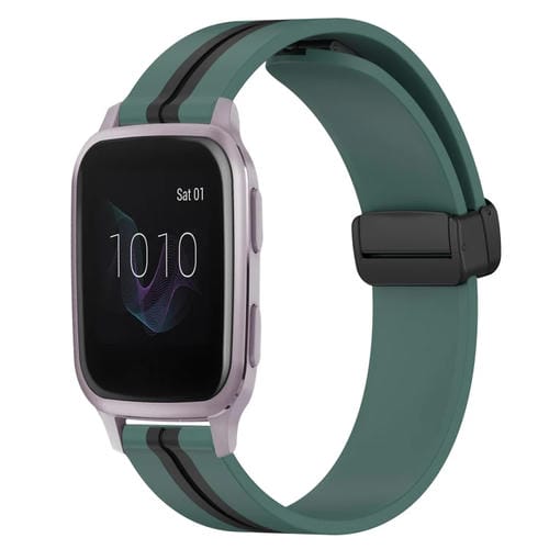 Correa de Reloj para Garmin Venu Sq 20mm Silicona Cierre Magnético Plegable (Verde Oliva + Negro)
