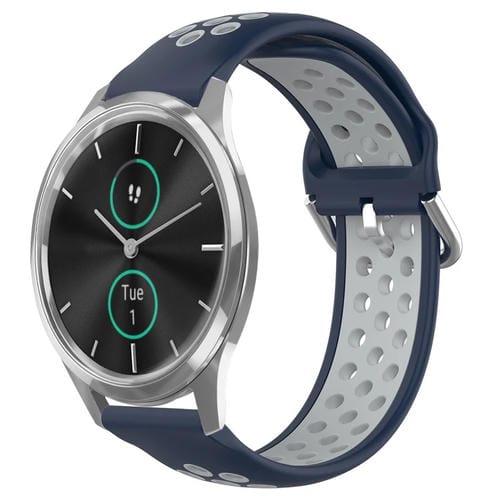 Para Garmin Vivomove Luxe 20mm Correa de Reloj de Silicona Deportiva Transpirable Perforada (Azul Medianoche + Gris)