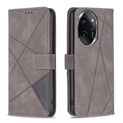 Funda para Honor 100 Pro de Cuero con Textura de Rombo y Hebilla Magnética (Gris)